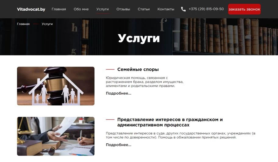 Список ваших услуг. Для каждой услуги также могут быть отдельные страницы с подробным описанием и ценами.